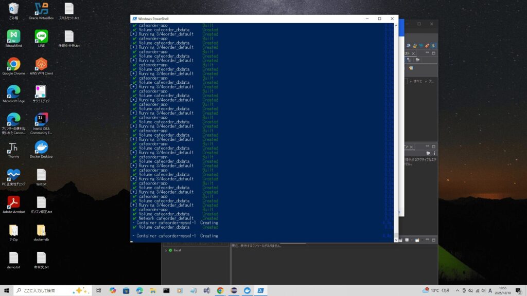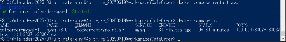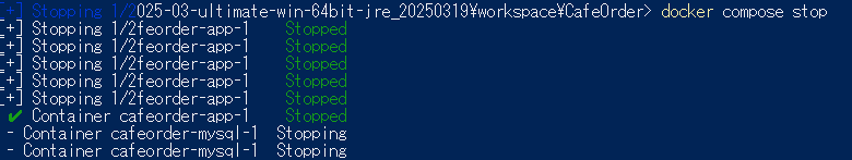 みずがめの場合は「Container cafeorder-app-1 Started」と表示されています。