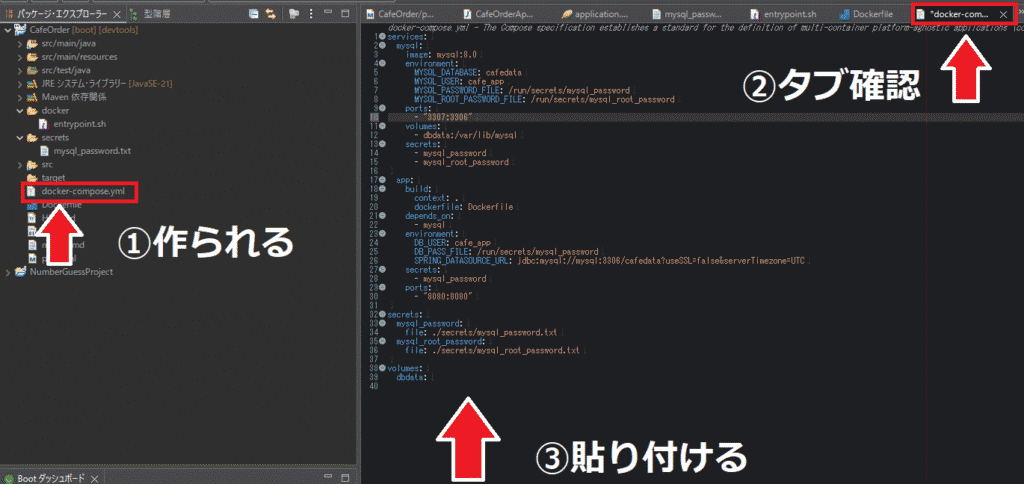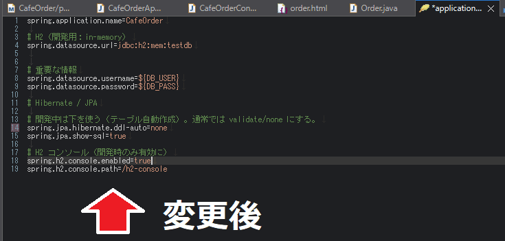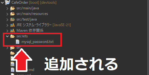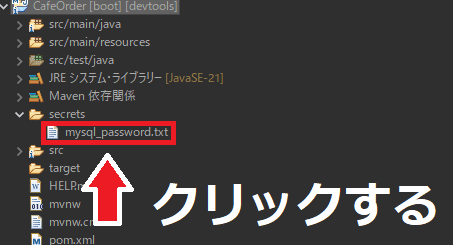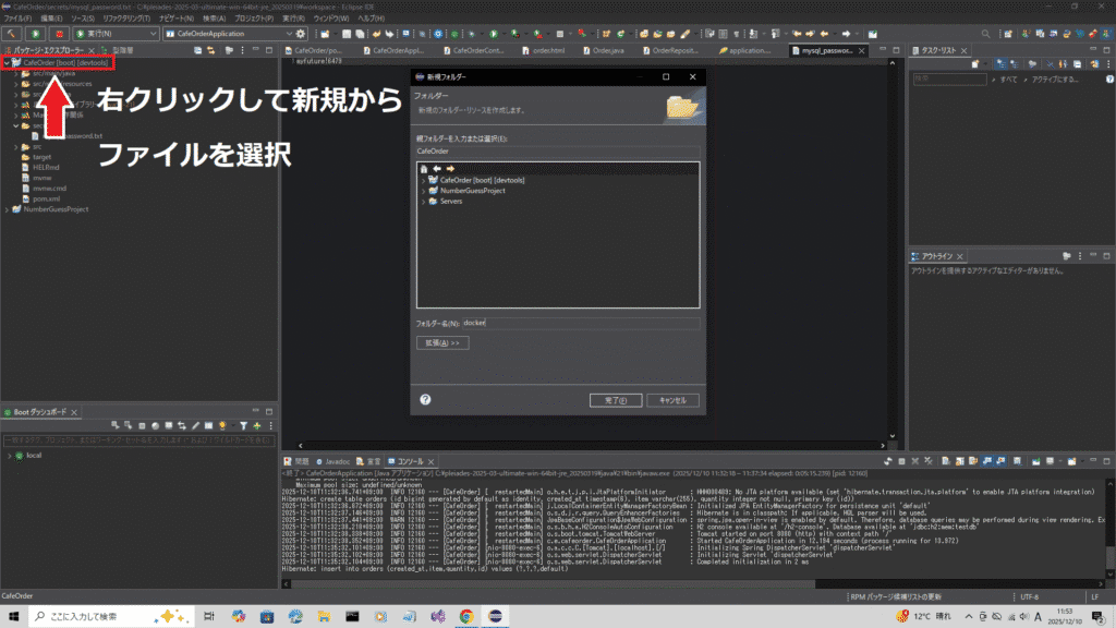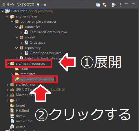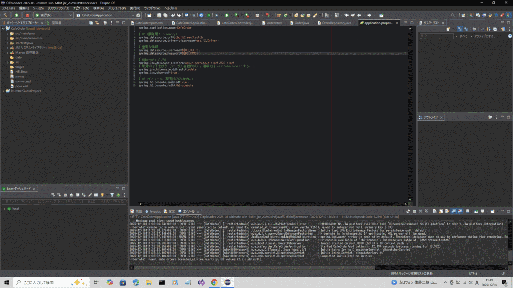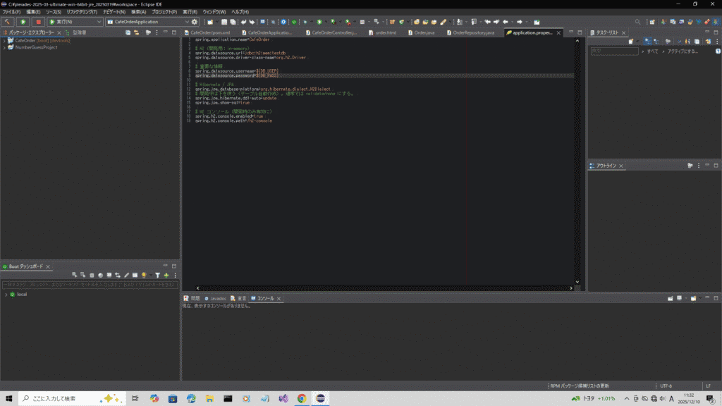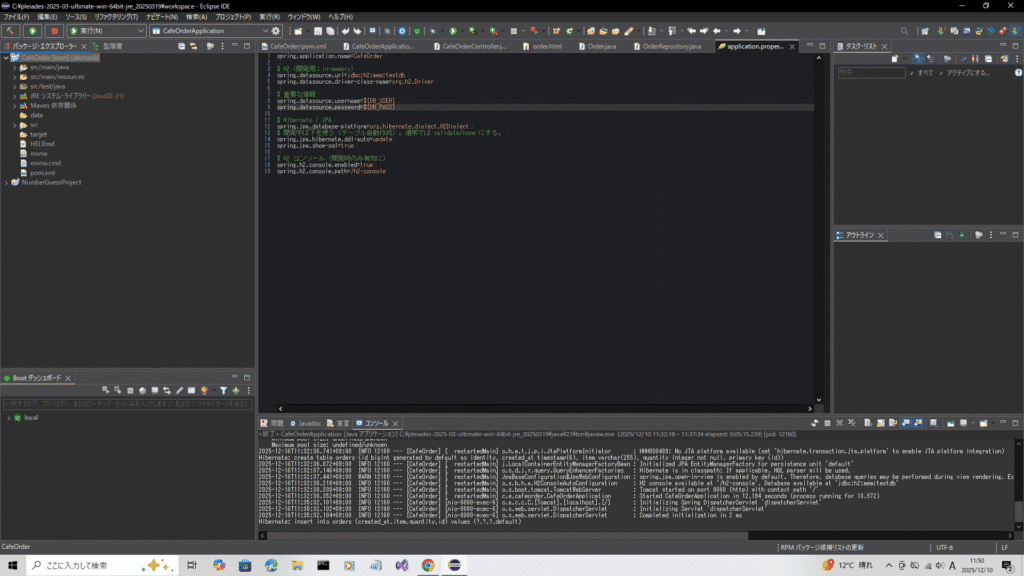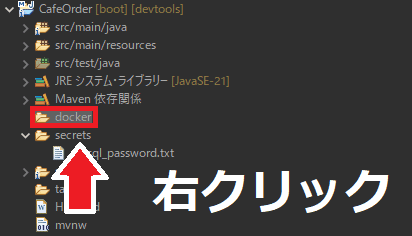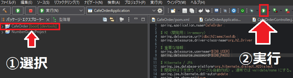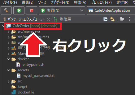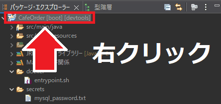 「CafeOrder[boot][devtools]」を選択します。「▷」をクリックして実行してください。