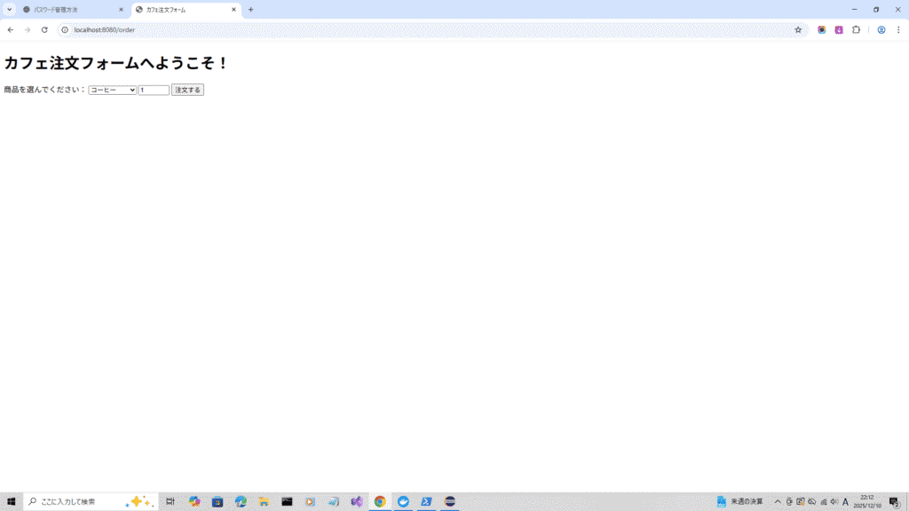 注文フォームが表示されました。Webアプリは問題なく起動しています。
