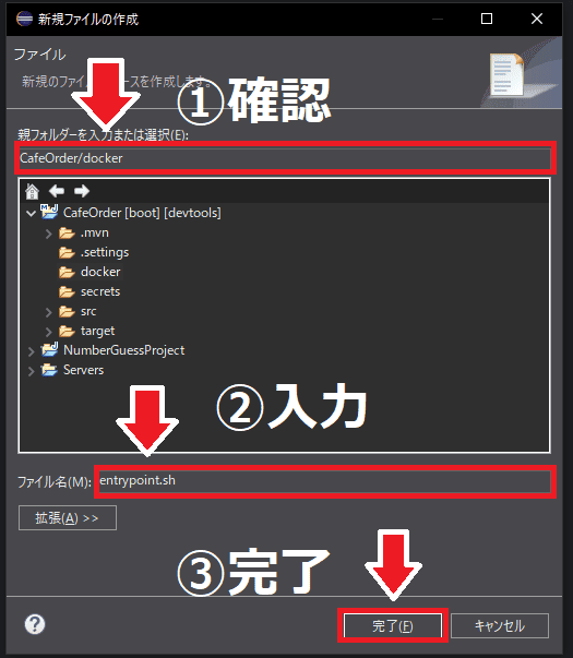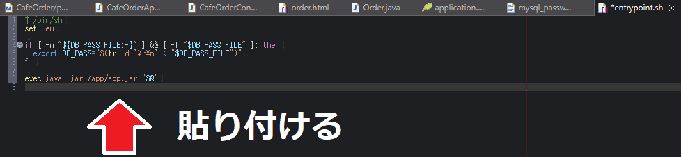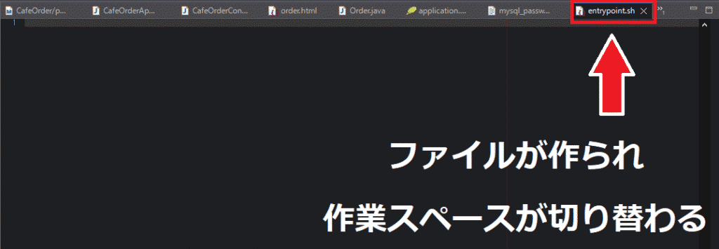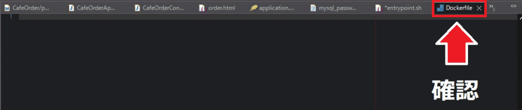 「~~\CafeOrder> _ 」になったら成功です。コンテナから出ています。