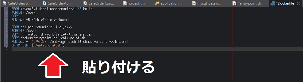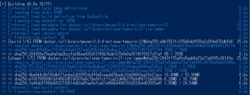 Dockerfileで「maven:3.9.4-eclipse-temurin-21-alpine」と書いているため、そのまま続けてください。
