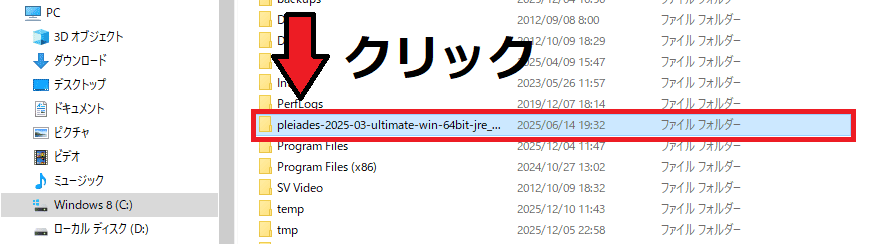 Cドライブの中に入ると「temp」と表記されたファイルがあります。ダブルクリックしてください。
