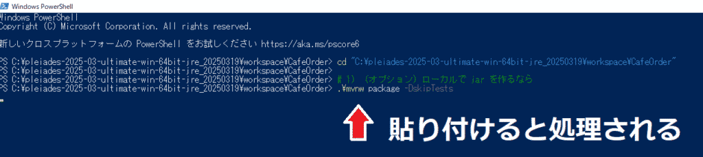 上記のコードをコピーし、PowerShell上で右クリックすると貼り付けが完了します。