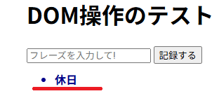以下は、入力欄に入れたフレーズ(状態)をリストに追加するDOMのテストコードです。