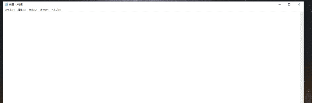 以下の画像は、メモ帳が起動した状態です。起動できたら、次のステップに進んでください。